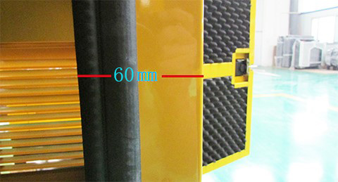靜音箱箱體的內(nèi)壁,采用波峰式吸音棉全面敷設(shè),不留死角,確保全方位,大范圍吸收音波,吸音棉與箱體鋼板的厚度合約60mm。我們知道,聲波的擴(kuò)散是呈曲線形的,靜音箱體內(nèi)部的吸音棉,完全根據(jù)聲波的擴(kuò)散形式設(shè)計(jì),通過(guò)一個(gè)個(gè)的泡孔緩解聲音,阻隔傳遞,波峰式吸音棉表面的面積是平面面積的4倍以上,大大加強(qiáng)了吸音的強(qiáng)度,有效全面阻擋吸收聲音。吸音阻音效果高。